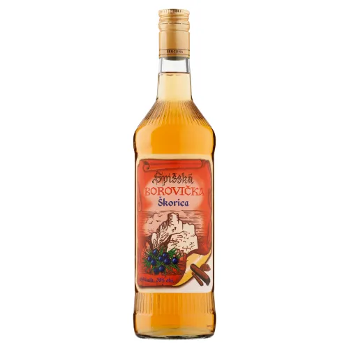 Zloženie: Voda, Lieh, Borievkový destilát, Prírodná škoricová aróma, Prírodná borievková aróma, Cukor