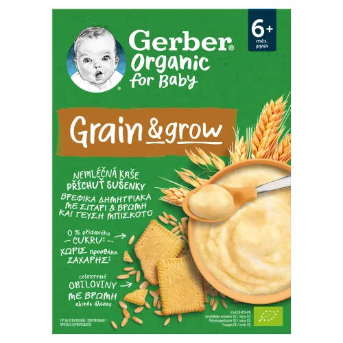 GERBER Organic nemliečna kaša s príchuťou sušienky je príkrm určený pre dojčatá od ukončeného 6. mesiaca veku dieťaťa. Kaše kombinujú vysoké nároky malých gurmánov na prirodzene sladkastú chuť, ktorá vzniká vďaka špeciálnemu procesu spracovania obilnín. Rodičia ocenia jednoduchú a rýchlu prípravu v ktorejkoľvek časti dňa, či už chystajú raňajky alebo večeru.