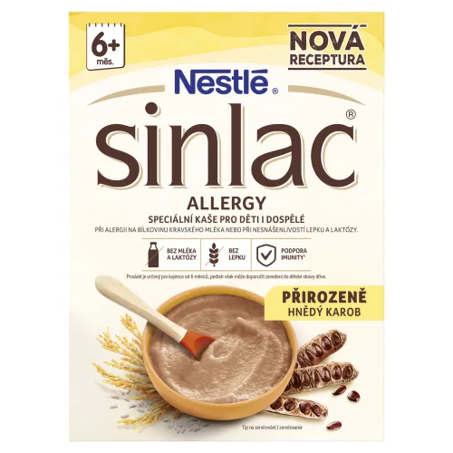Alergie na bielkoviny kravského mlieka sa často vyskytujú už v dojčenskom a detskom veku. Najdôležitejším krokom pri prevencii a zmierňovaní alergií v strave je dôsledné vyhýbanie sa takto zaťaženým potravinám alebo jednotlivým zložkám a zároveň venovanie pozornosti pôvodu bielkovín v strave. Sinlac obsahuje iba rastlinné bielkoviny - z ryže a karobu. Kaša je vhodná pri zvýšenom riziku vzniku alergií aj pri preukázaných alergiách.