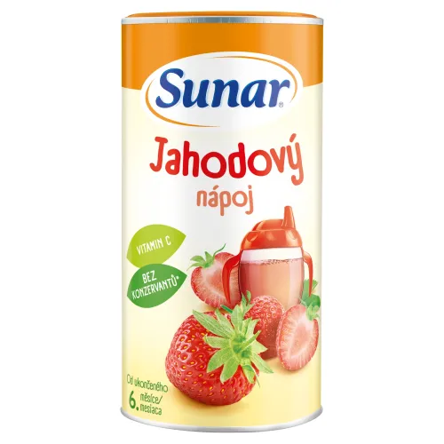 Sunar rozpustný nápoj s príchuťou jahody je obohatený o vitamín C a neobsahuje žiadne konzervačné látky ani farbivá.