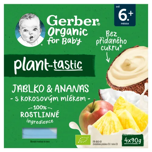 GERBER Organic 100% rastlinný dezert jablko a ananás s kokosovým mliekom 4 x