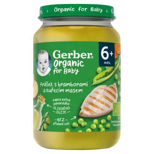 GERBER Organic detský príkrm hrášok so zemiakmi a kuracím mäsom