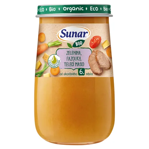 Sunar BIO mäsovo-zeleninový príkrm pre deti od uk. 6. mesiace. Kombinácia teľacieho mäsa s fazuľkami a kvalitnou bio zeleninou si vaše deti zamilujú. Všetko v najvyššej BIO Baby kvalite. Neobsahuje pridanú soľ, konzervačné látky, farbivá ani arómy.