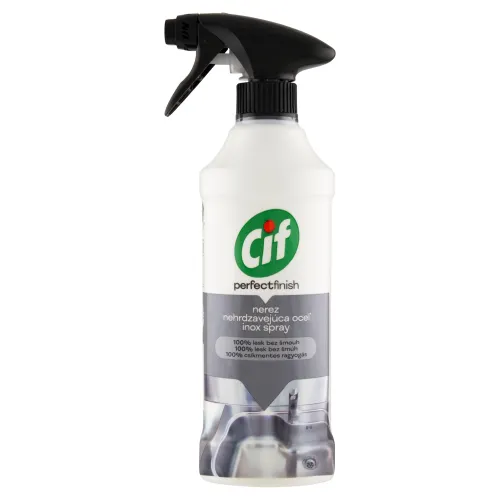 Špeciálne navrhnutý čistič Cif Perfect Finish Nerez je tým najlepším pomocníkom pri upratovaní na odstránenie nečistôt ako sú odtlačky prstov, zasché kvapky vody a mastnota. Pre 100% lesk bez šmúh na nerezovom povrchu. Je jemný k povrchom a zanecháva dokonalý lesk. Nechajte svoje nerezové povrchy dokonale zažiariť a vráťte im trvalý lesk vďaka Cif Perfect Finish Nerez čistiacemu spreju.