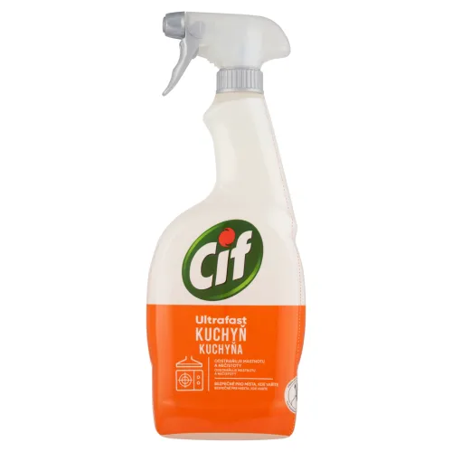 Cif Ultrafast Kuchyňa čistiaci sprej je dokonalý pomocník pri upratovaní vašej kuchyne. Vďaka odmasťujúcemu zloženiu, obohatenom o extrakt z citróna, odstráni ľahko a rýchlo bežné nečistoty v kuchyni. Odstraňuje mastnotu a nečistoty, použitie je bezpečné aj pre miesta, kde varíte a povrchy, ktoré prichádzajú do kontaktu s potravinami.