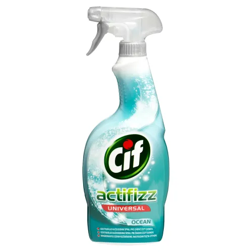 Cif Actifizz Ocean sprej vďaka šumivej technológii ľahko odstraňuje každodennú špinu v kuchyni a kúpeľni. Pre dokonale lesklý povrch.