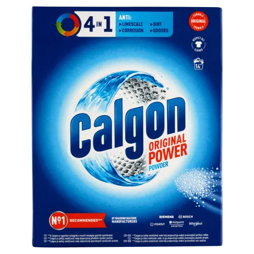 Bezpečnosť: Calgon 4 v 1 Power prášok. Uchovávajte mimo dosahu detí. Nesmie prísť do kontaktu s očami. V prípade kontaktu s očami je potrebné ich dôkladne vypláchnuť vodou. Nekonzumujte. V prípade požitia výrobku vyhľadajte lekársku pomoc.