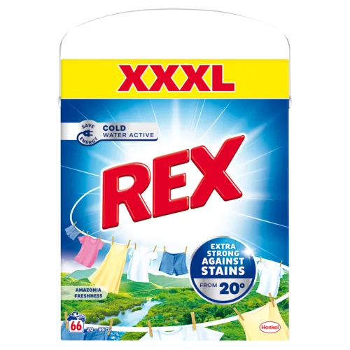 Univerzálny prací prostriedok Rex Amazonia Freshness účinne odstraňuje škvrny a je ideálny pre veľké objemy bielizne. So svojím novým zložením Cold Water Active odstraňuje škvrny z oblečenia pri praní už od 20 °C. Použite REX Cold Water Active a prepnite na nízkoteplotné pranie, aby ste ušetrili energiu bez toho, aby ste museli poľaviť od silného výkonu pre bezchybne čistú bielizeň pri každom praní. Prací prášok zanecháva bielizeň nielen čistú, ale tiež jej poskytuje sviežu vôňu amazonského dažďového pralesa. Prášok na pranie bol vyvinutý tak, aby udržal bielu a stálofarebnú bielizeň žiarivú a bez škvŕn. Rex prináša vysoko kvalitné pracie prostriedky, ktoré efektívne vyperú aj veľké objemy bielizne, vždy za skvelú cenu.