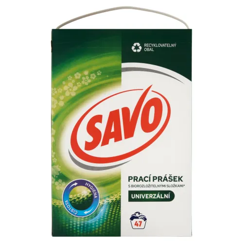 Savo univerzálny prací prášok na farebnú aj bielu bielizeň sa postará o odstránenie odolných škvŕn a zápachov. Inovatívne zloženie pracieho prášku obsahujúce 84 % biorozložiteľných organických zložiek zanechá vašu bielizeň hygienicky čistú, príjemne prevoňanú a dlhodobo sviežu. Stará sa o vašu bielizeň a zanechá ju hygienicky čistú. Prací prášok môžete bez obáv použiť na všetky tkaniny s vlnou a hodvábom. Zbavte sa odolných škvŕn a nechajte svoju bielizeň zažiariť čistotou!