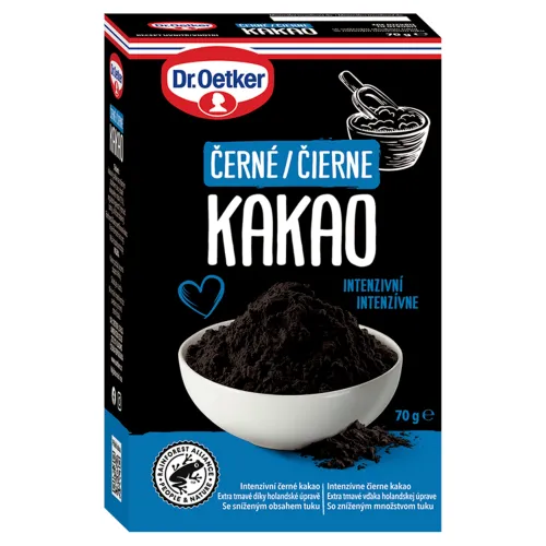 Čierne kakao Dr. Oetker je jedinečné kakao s intenzívnou čiernou farbou na dokonalé tmavé zafarbenie cesta, polevy alebo fondánu.