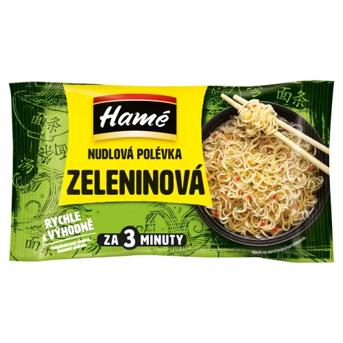 Zloženie: Instantné bezvaječné rezance (56 g): pšeničná múka, palmový tuk, jedlá soľ, cukor, regulátory kyslosti (uhličitan sodné, uhličitany draselné), zahusťovadlo (guarová guma), Sypký ochucujúci prípravok (4 g): jedlá soľ, zvýrazňovač chuti (glutaman sodný), zmes sušenej zeleniny 10,6 % (mrkva, cibuľa, cesnak, petržlenová vňať, paštrnák, pažítka), cukor, maltodextrín, kurkuma, repkový olej, dextróza, kvasnicový extrakt, extrakt korenín (korenie čierne), protihrudkujúca látka E341