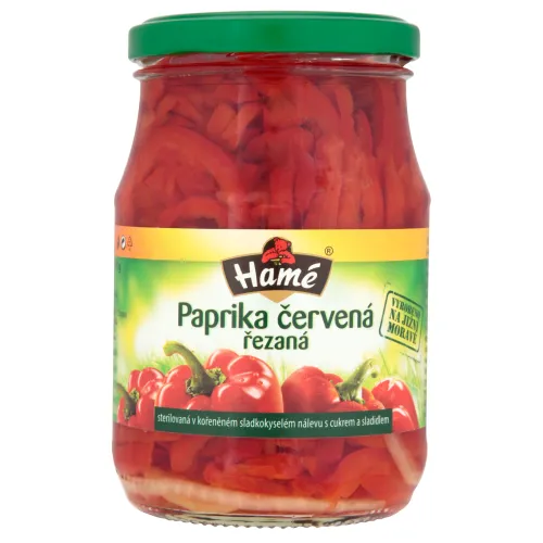 Hamé Červená paprika rezaná v korenenom sladkokyslom náleve s cukrom a sladidlami