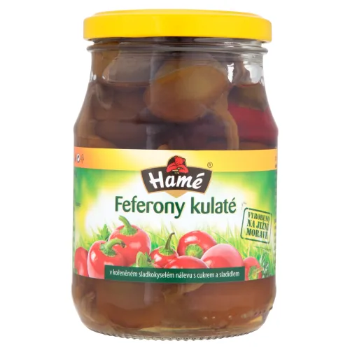 Hamé Sterilizované feferóny guľaté v korenenom sladkokyslom náleve s cukrom a sladidlami