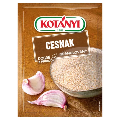 Cesnak má mierne štipľavú, sladkastú typickú vôňu a chuť. Cesnak je nenahraditeľnou zložkou stredomorských špecialít a tiež ázijskej kuchyne. KOTÁNYI Cesnak granulovaný ochutí vaše pokrmy rovnako ako čerstvo drvený cesnak.