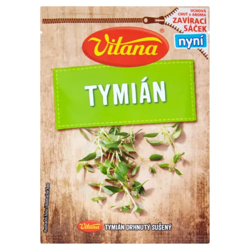 Výrazne aromatická bylinka s ostrejšou sladkastou chuťou a vôňou pripomínajúcou gáfor či klinček. Tymian je korenie zo sušených vetvičiek, listov a kvetov. Výrazná chuť a aróma tymianu vynikajú nielen pri príprave diviny, hydiny a sekanej, ale aj v tradičných omáčkach, plnkách, paštétach, syroch a bylinkovom masle. Výborný je v plnke do kuraťa alebo v paradajkových omáčkach a polievkach. V zmesi spolu s oreganom a bazalkou sa používa na pizzu a cestoviny. Ostré podtóny tymianu vylepšia chuť pečenej, grilovanej či dusenej ryby.