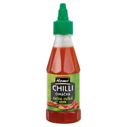 Zloženie: Voda, Cukor, Modifikovaný škrob E1442, Ocot, Nakladané extra štipľavé čili papriky 3 % (čili paprika, jedlá soľ), Nakladané čili papriky 3 % (čili paprika, jedlá soľ, regulátor kyslosti: kyselina octová), Rajčinový pretlak, Jedlá soľ, Cesnak, Farbivá paprikové extrakty, Regulátor kyslosti: kyselina citrónová, Konzervačné látky (sorban draselný a benzoan sodný), Farbivo (kurkumín)