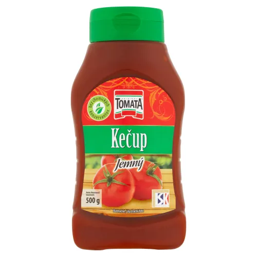 Voda, Paradajkový pretlak (156 g paradajok na 100 g kečupu), Glukózový sirup, Modifikovaný kukuričný škrob, Jedlá soľ, Ocot kvasný liehový, Extrakt z korenín, Sušená cibuľa, Sušený cesnak , Koreniny