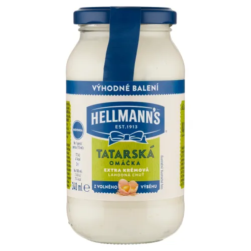 Nová extra krémová tatárska omáčka Hellmann's sa vyrába z jednoduchých ingrediencií, ako je olej, ocot a vajcia. Na rozdiel od majonézy však obsahuje kúsky zeleniny - cibuľu, pažítku a uhorky. Hodí sa k hranolčekom a vyprážanému syru, ako aj k ďalším obľúbeným jedlám, ktoré skvele chutia. Značka Hellmann's stojí nielen na strane potravín, ale aj na strane zvierat, preto majonézy a tatarky Hellmann's obsahujú vajcia z voľného chovu. Hellmann's dodá vašim obľúbeným receptom viac chuti vďaka lahodným výrobkom, ktoré sú vyrobené zo zodpovedne získaných surovín.
