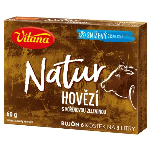 Zloženie: Palmový olej, Morská soľ, Škrob, Škrob maltodextrín, Kvasnicový výťažok, Arómy, Výťažok hovädzieho mäsa 4,7 % (soľ jedlá, hovädzí extrakt 2,2 %, repkový olej), Sušená zelenina 2,9 % (mrkva 1,4 %, cibuľa), Cukor, Sušené hovädzie mäso 1,8 %, Pšeničná vláknina bezgluténová, Saturejka záhradná mletá, Korenie čierne mleté, Rozmarínový extrakt