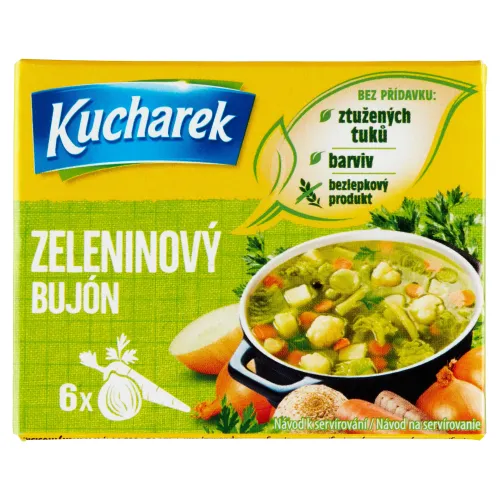 Použitie: bujón je vhodný na prípravu zeleninového vývaru, na ochutenie polievok, omáčok, pokrmov zo zeleniny, ryže a strukovín.
