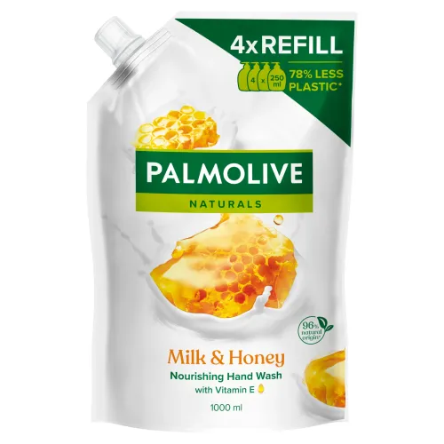 Tekuté mydlo na ruky Palmolive Naturals Milk & Honey obohatené o vitamín E zanechá vaše ruky jemné a vyživené. Toto nádherne voňajúce mydlo na ruky inšpirované prírodou poteší vaše zmysly.