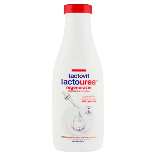 Zloženie regeneračného sprchového gélu Lactovit Lactourea je špeciálne vyvinuté pre suchú a veľmi suchú pokožku. Intenzívne hydratuje pokožku zvnútra a zároveň ju udržuje regenerovanú. Regenerovaná pokožka, mladá pokožka. 9 z 10 dermatológov odporúča používanie hydratačných sprchových gélov alebo telových mliek s ureou a kyselinou mliečnou.