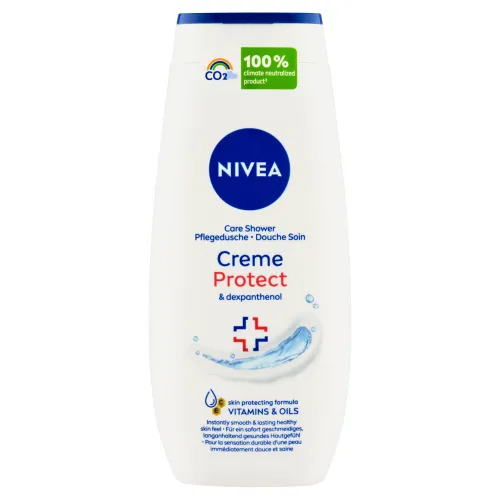 Upokojujúci sprchovací gél Creme Protect s dexpantenolom, vitamínom C, vitamínom E a vzácnymi olejmi zabraňuje vysušovaniu pokožky. Nenarušuje prirodzenú mikrobiálnu vrstvu pokožky. Klimaticky neutralizovaný výrobok (emisie CO₂ sú kompenzované pomocou certifikovaných klimatických projektov).
