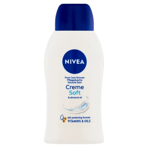 Ošetrujúci sprchovací gél Creme Soft s vitamínom C, vitamínom E a vzácnymi olejmi zabraňuje vysušovaniu pokožky.