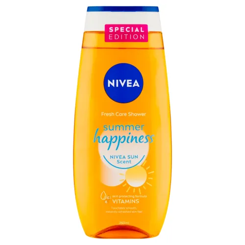Osviežujúci sprchovací gél s vitamínom C, vitamínom E as unikátnou vôňou Nivea Sun okamžite osvieži pokožku. V rovnováhe s prirodzenou mikrobiálnou vrstvou pokožky. 99 % zloženia je biologicky rozložiteľných.