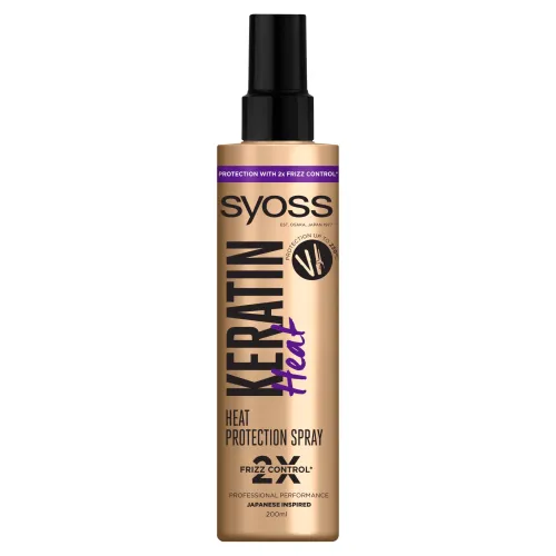 Ochranný sprej na vlasy od značky Syoss poskytuje vlasom až trojdňovú ochranu pred teplom až do 230 ° C pri fénovaní, kulmovaní či žehlení. Receptúra prípravku sa aktivuje teplom a pomáha redukovať krepatenie vlasov. Ochranný sprej Syoss Keratin obsahuje 2X viac keratínu.*