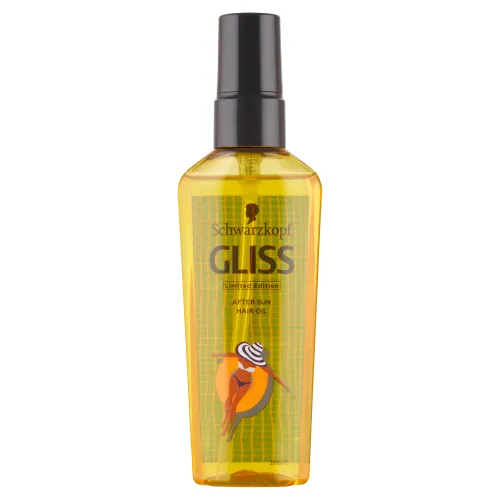Gliss Après Sun vlasový olej vyživuje a opravuje smädné letné vlasy. Pre žiarivý, slnkom pobozkaný lesk. ->