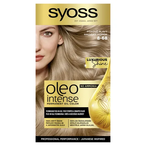 Syoss Oleo Intense - olejom posilnené dlhotrvajúce farbenie bez amoniaku pre pocit silných a zdravých vlasov. Ošetrujúca receptúra pomáha farebným pigmentom preniknúť hlboko do vlasových vlákien pre sýtu, dlhotrvajúcu farbu a 100% krytie šedín. Ošetrujúca maska s technológiou PLEX, obohatená o zmes 4 japonských olejov, po procese farbenia obaľuje vlasové vlákna ako štít, obnovuje silu vlasov a zlepšuje textúru. Navyše vlasom dodáva záverečnú výživu, zanecháva ich zamatovo hebké a plné luxusného lesku.