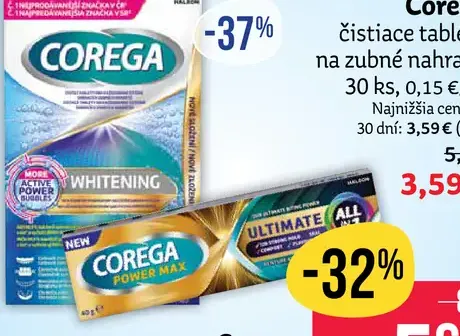 Corega Whitening čistiace tablety na zubné náhrady