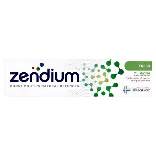 Zubná pasta zendium využíva silu proteínov a enzýmov vo vašich ústach. S každým čistením, zendium podporuje prirodzenú obranyschopnosť vašej ústnej dutiny, a tým pomáha intenzívnejšie bojovať proti príčinám problémov ústnej dutiny a ďasien. Mätová príchuť dodáva pocit čistoty a sviežosti.