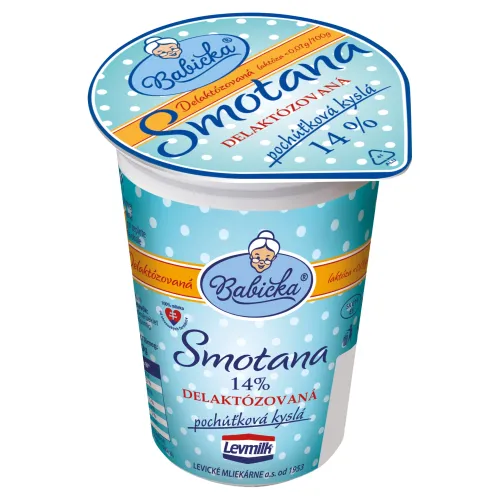 Zloženie: Pasterizovaná smotana, Smotanová kultúra, Enzým: laktáza, Množstvo tuku: najmenej 14% hmot., Množstvo celkovej sušiny: najmenej 19,5% hmot.