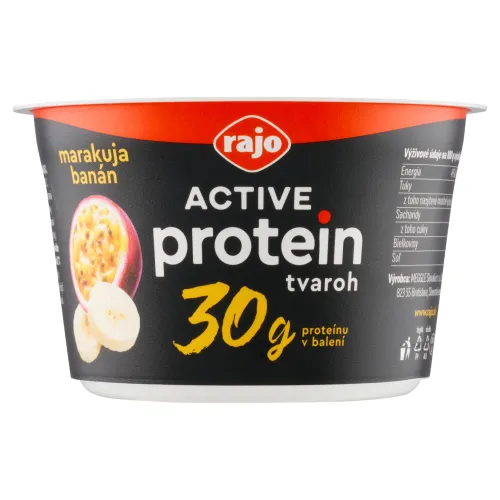 Zloženie: Tvaroh jemný hrudkovitý 83 %, Ovocná zložka 17 % (voda, cukor, koncentrovaná marakujová šťava 5,4 %, modifikovaný kukuričný škrob, koncentrovaná banánová šťava 3,1 %, arómy, farbiaci extrakt z mrkvy), Tuk 1,4 %