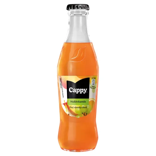 Doplňte si energiu pohárom osviežujúceho Cappy Multivitamín vyrobeného z lahodného ovocia. S vitamínmi C, E, niacínom, A, kyselinou pantoténovou a B₆***.
