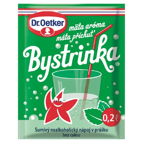 Dr. Oetker Bystrinka šumivý nealkoholický nápoj v prášku bez cukru mäta aróma