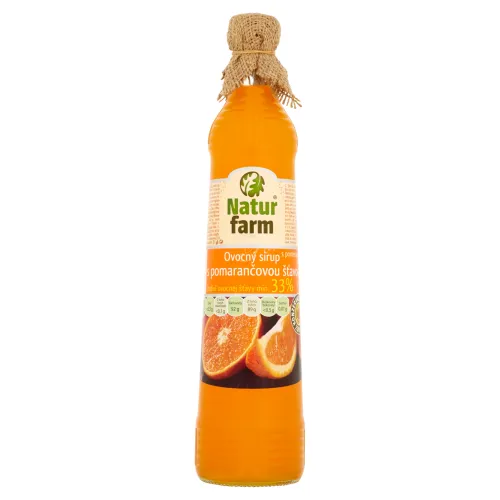 Zloženie: Fruktózo-glukózový sirup, Pitná voda, Ovocné šťavy z koncentrátu (jablčná 31% a pomarančová 2%), Kyselina kyselina citrónová , Arómy, Antioxidant: kyselina akorbová, Stabilizátory: arabská guma, glycerol estery živíc dreva, Farbivá: karotény, beta-apo-8´karotinal, Podiel ovocnej zložky min. 33%