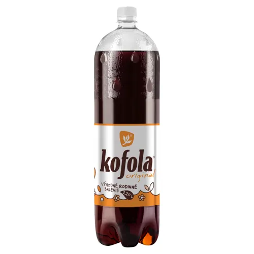 Zloženie: Voda, Sirup KOFO® (ovocný sirup, cukor, glukózo-fruktózový sirup, voda karamel - pálený cukor, farbivo E150d, kyselina: kyselina citrónová, chlorid sodný, esencia pre KOFO® - prírodná aróma a aróma, bylinný extrakt - prírodná aróma, extrakt zo sladkého drievka - prírodná aróma, konzervačná látka E211, kofeín), Oxid uhličitý