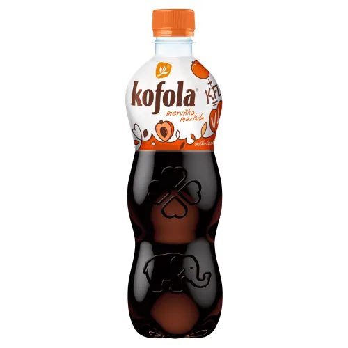 Zloženie: Voda, Sirup KOFO® (ovocný sirup, cukor glukózo-fruktózový sirup, voda, karamel - pálený cukor, farbivo E150d, kyselina: kyselina citrónová; chlorid sodný; esencia pre KOFO® - prírodná aróma a aróma, bylinný extrakt - prírodná aróma, extrakt zo sladkého drievka - prírodná aróma, kofeín; konzervačná látka E211), Sirup KOFO® (ovocný sirup, cukor, voda, karamel - pálený cukor, farbivo E150d, kyselina: kyselina citrónová, chlorid sodný, esencia pre KOFO® - prírodná aróma a aróma, bylinný extrakt - prírodná aróma, extrakt zo sladkého drievka - prírodná aróma, kofeín, konzervačná látka E211), Oxid uhličitý, Marhuľová šťava z koncentrátu (0,1%), Aroma, Arómy