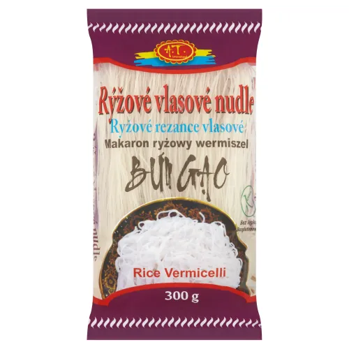 Ryžové rezance vložte do vlažnej vody a nechajte odstáť asi 5-10 minút, vodu sceďte a nechajte odkvapkať. Potom ich vložte do vriacej vody, varte asi 4 minúty a sceďte. Prepláchnite studenou vodou, aby sa rezance nelepili a môžete podávať.