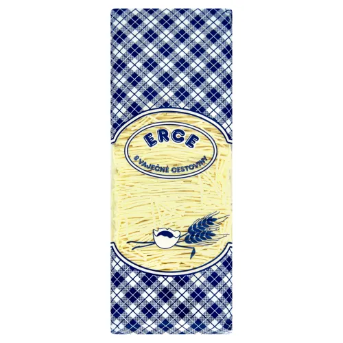 Zloženie: Pšeničná múka, Pitná voda, Sušená pasterizovaná vaječná hmota 7,7% (8 vajec na 1 kg múky), Kurkuma
