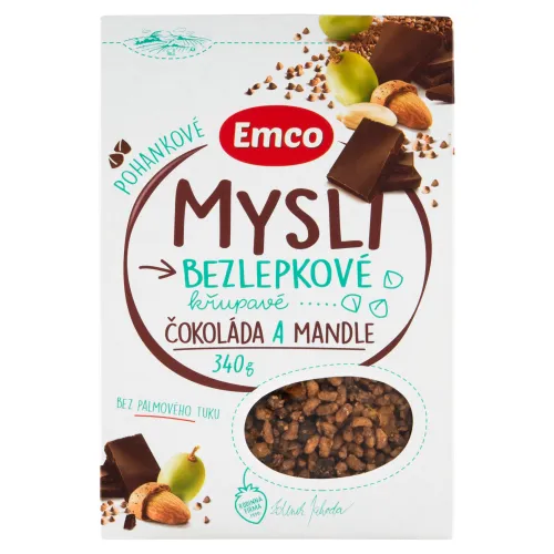 Zloženie: Cereálie 30 % [pohánkové vločky 50 %, pšenový extrudát 50 % (pšeno 31 %, kukuričná krupica, ryža, trstinový cukor, jedlá soľ)], Cukor, Ryžová múka, Repkový olej, Hrozienka 5 % (hrozienka 99,5 %, slnečnicový olej), Kukuričné lupienky (kukuričná múka 98 %, jedlá soľ), Horká čokoláda 5 % (cukor, kakaové maslo, kakaová hmota, kakaový prášok so zníženým obsahom tuku, emulgátor: slnečnicový lecitín, vanilkový extrakt), Ryžový extrudát (ryža 93 %, trstinový cukor, jedlá soľ), Strúhaný kokos 3,5 %, Zemiakový škrob, Plátky mandlí 2 %, Pufovaný amarant 1,5 %, Kakaový prášok so zníženým obsahom tuku, Antioxidanty (askorbylpalmitát, tokoferolový extrakt)
