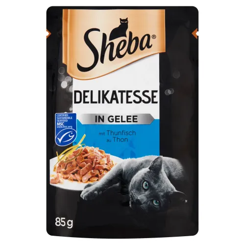Sheba Delikatesse in Gelee Kompletné mokré krmivo pre dospelé mačky s tuniakom