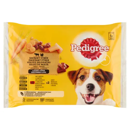 Krmivo Pedigree Wet je 100% kompletné a vyvážené, výživné mokré krmivo pre psy. Ponúka veľmi chutnú každodennú potravu, ktorá vo vašom psovi prebudí nákazlivé nadšenie. Ľahko otvárateľné kapsičky poskytujú ideálnu porciu čerstvého zdravého krmiva. Kapsičky pre psy značky Pedigree, vyvinuté v spolupráci s veterinármi a odborníkmi na výživu vo Waltham Centre pre výživu domácich zvierat, majú všetky potrebné živiny podporujúce optimálne trávenie, zdravú kožu a srsť, prirodzenú obranyschopnosť organizmu a zdravé kosti. Pedigree kapsičky pre psy neobsahujú žiadne umelé farbivá, príchute ani konzervačné látky.