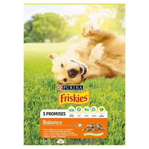 Friskies® Balance je zdrojom kvalitných bielkovín a ďalších živín, ktoré váš pes potrebuje pre šťastný rodinný život.