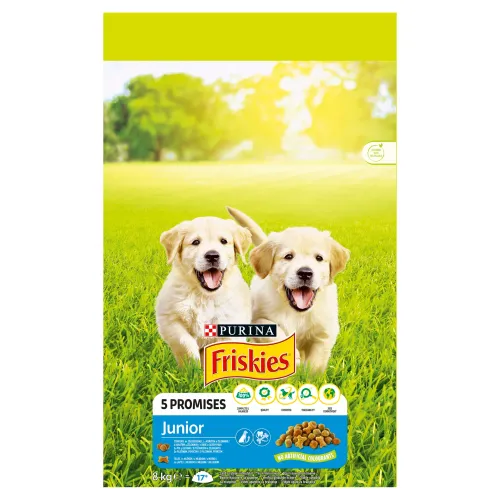 Mladé šteniatka potrebujú, kvôli svojmu rastu a hravosti, podstatne viac energie ako dospelé psy. Friskies® Junior je 100 % vyvážené a výživné krmivo s bielkovinami navyše a správnym množstvom vitamínov zodpovedajúcich potrebám šteniatok.