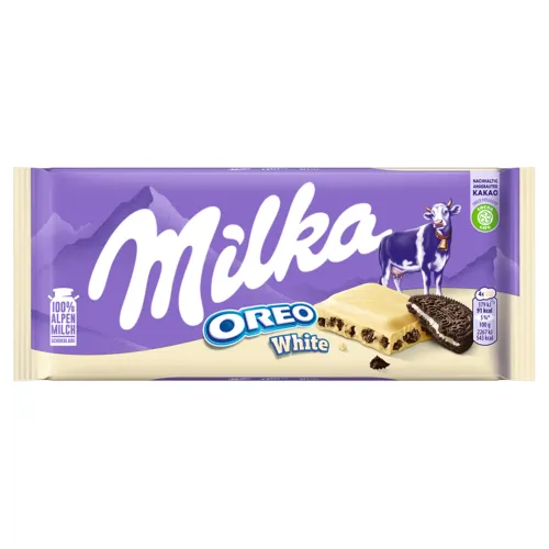 - Kombinácia bielej čokolády Milka a chrumkavých sušienok OREO