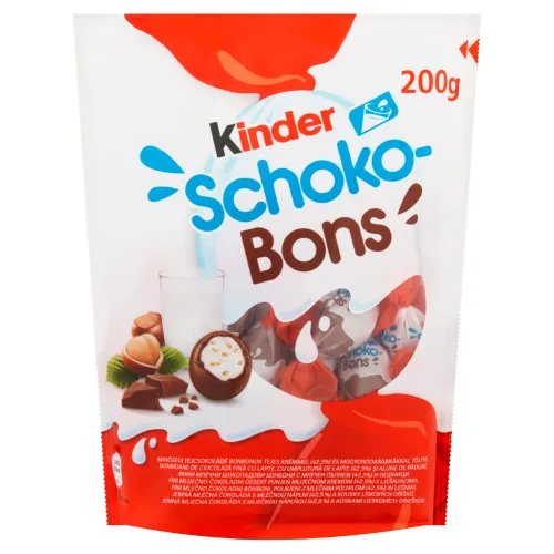 Zloženie: Jemná mliečna čokoláda 50 % (cukor, sušené plnotučné mlieko (23 %), kakaové maslo, kakaová hmota, emulgátor: lecitíny (sójové); vanilín), Cukor, Sušené odtučnené mlieko (12,5 %), Palmový olej, Lieskovce (5,8 %), Bezvodný mliečny tuk, Jemná čokoláda (cukor, kakaová hmota, kakaové maslo, emulgátor: lecitíny (sójové); vanilín), Povlaková látka (arabská guma), Glukózový sirup, Emulgátor: lecitíny (sójové), Vanilín , Obsah mliečnej sušiny: najmenej 28 % z celkovej hmotnosti, Obsah kakaových zložiek: najmenej 16,5 % z celkovej hmotnosti